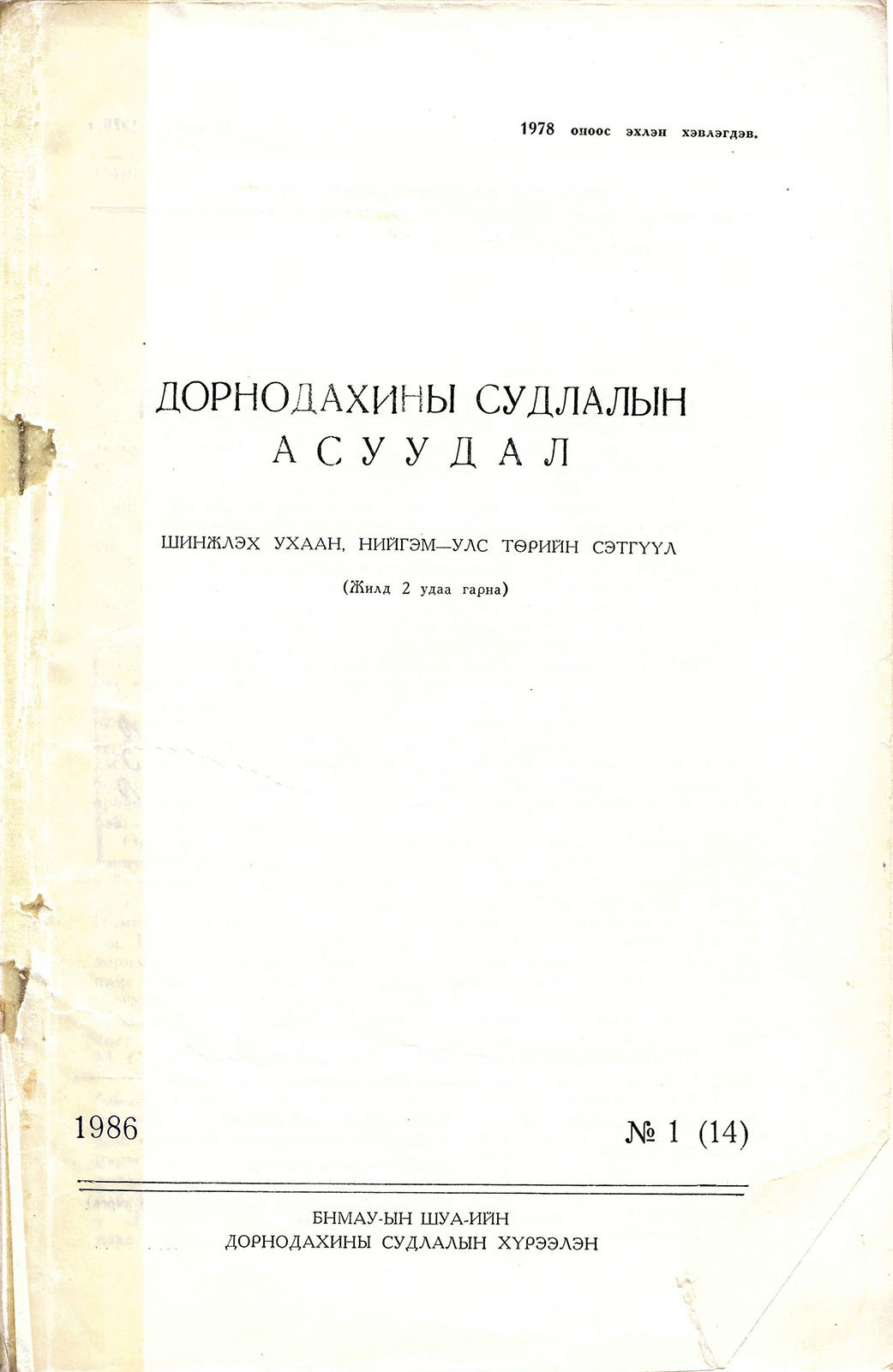 "Дорнодахины судлалын асуудал" сэтгүүлд 1985 онд хэвлэгдсэн материалын агуулга