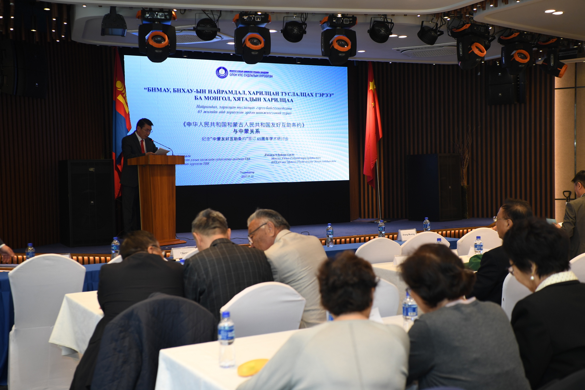 Монгол, Хятадын хооронд “Найрамдал, харилцан туслалцах гэрээ” байгуулсны 65 жилийн ой энэ 2025 онд тохиож байна. Энэ хүрээнд ШУА-ийн Олон улс судлалын хүрээлэнгээс санаачлан Монгол Улсын Гадаад харилцааны яам, БНХАУ-аас Монгол Улсад суугаа ЭСЯ-ны дэмжлэгтэйгээр “БНМАУ, БНХАУ-ын Найрамдал, харилцан туслалцах гэрээ ба Монгол, Хятадын харилцаа” сэдэвт эрдэм шинжилгээний хурлыг Дорно дахин судлалын хүрээлэн, Нэг бүс, нэг зам олон улсын хөгжлийн судалгааны академитай хамтран 5 дугаар сарын 30-ны өдөр зохион байгууллаа.